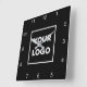 Create your own minimal square wall clock for your business featuring your logo on a black background with simple white numbers around the edge. Replace the sample company logo with your own in the sidebar. Your logo can be a circle, square, or another shape. White or light coloured logos will work best with this design. Click to customise further if you need to adjust the size of your logo with the scale buttons or to change the background colour.