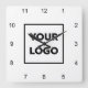 Create your own minimal square wall clock for your business featuring your logo on a white background with simple black numbers around the edge. Replace the sample company logo with your own in the sidebar. Your logo can be a circle, square, or another shape, and in colour or black and white. Click to customise further if you need to adjust the size of your logo with the scale buttons.