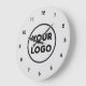 Replace the sample company logo with your own in the sidebar to create a stylish minimal wall clock for your business with a simple light grey background. Your logo can be in colour or black and white. Bold black numbers around the edge make it easy to tell the time. Click to customise further if you need to adjust the size of your logo with the scale buttons. If you want the background colour to show through your logo, upload a version of your logo with a transparent background.
