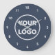 Custom Business Logo on Simple Navy Blue Large Clock