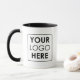 A modern minimalist personalised business coffee mug business logo. Personalise with your logo to create your own design. Customise even further with a custom coffee mug colour.