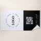 Promote your brand with this custom business beach towel, featuring your round logo, QR code, and editable text in a modern black and white design. Great for promotional events, team gifts, or branded giveaways, this elegant minimalist towel helps showcase your business in a bold, clean layout. Just create your own and personalise it for your next campaign.