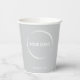 Perfect paper cup for a business. Just add your logo and an optional text - for example a slogan or an address. Available in different colours.