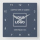 Custom Business Logo Text Minimal Navy Blue Square Wall Clock