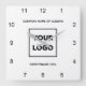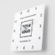 Create your own minimal square wall clock for your business featuring your logo and text on a white background with simple black numbers around the edge. Replace the sample company logo and text with your own in the sidebar. Your logo can be a circle, square, or another shape, and in colour or black and white. Click to customise further if you need to adjust the size of your logo with the scale buttons.
