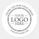 Promote your brand with personalised thank you stickers, featuring your logo and custom text in an elegant serif font.