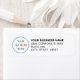 These custom branded white business return address labels feature your professional business logo design. Simply add your company logo to the round colourful placeholder image and personalise with your business name and address.