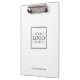 Promote your brand with personalised clipboards, featuring your logo and custom text in an elegant black serif font.