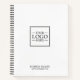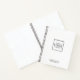 Promote your brand with personalised notebooks, featuring your logo and custom text in an elegant black serif font.