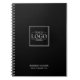 Promote your brand with personalised notebooks, featuring your logo and custom text in an elegant serif font.