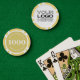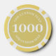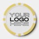 Personalised poker game chips with a custom business logo and your own text. This design in yellow includes the number 1000 but it can be edited with any value amount.