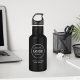 Custom black stainless steel branded water bottle features your professional business logo design, along with wording for your business name, slogan, website, location, or other information that can be personalized. Simply add your company logo to the white round placeholder image space, and fill in with your preferred wording.