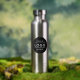 Custom silver branded water bottle features your professional business logo design, along with wording for your business name, slogan, website, location, or other information that can be personalised. Simply add your company logo to the black round placeholder image space, and fill in with your preferred wording.