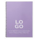 This professional custom notebook features a sophisticated and modern design on a lavender background. A sample company or business logo is placed near the bottom which you can personalise to include your own custom logo or other image. A sample business or company name, followed by a client or employee title are printed below the logo.