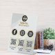 Showcase your business or event with this custom business social media QR code sign, designed for Instagram, Facebook, and web platforms. Featuring a sleek and durable pedestal design, this sign is perfect for beauty salons, office desks, or event tables. Customise it with your logo, QR codes, and branding to create a professional and eye-catching display. Available in four sizes with high-quality full-colour printing on sturdy polystyrene. Order now and make your message stand out!