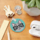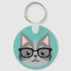 Button keychain illustrated with a cartoon cat. Add your pet's name or yours on the top to personalise. Background colour may be changed. Other cat styles available in the I Love Cats collection.