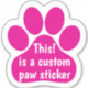A hot pink custom text paw print vinyl decal sticker template. You can customise the text with whatever you want. Personalise this cute paw sticker to talk about your dog. You can add your dog's name or your dogs's breed name, your favourite funny dog expression, Or, use it to promote your pet service business. Dog walking, grooming, pet sitting. A cute paw sticker for your car or truck.