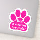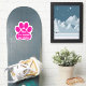 This version of the customised pawprint decal is hot pink with white text. It is available in several sizes suitable for phones, water bottles, laptops, notebooks, sports gear, etc. Anyplace you need a durable sticker.