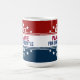 Red, white and blue with stars and stripes campaign mug template. with white stars. Makes a great gift for voters, campaign contributors, politicians, volunteers, memorabilia and more!