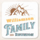 Fun family reunion coasters for your picnic, camping, pool party and other events. Cool graphic with sunrise / sunset and mountain. Modern fun typography with your family name. Unique way to celebrate a get together or reunion with the family. Perfect for beverages. Fun way to decorate your reunion party.
