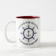 Cup with your custom captain and boat name around an anchor with circular rope border