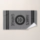 Custom car garage hand towel gift for mechanic. Cool present for car enthusiast, mechanic, race car owner, dad, husband, grandpa etc. Personalise with your own name or quote. Black and grey or custom colours. Manly design with car wheel tire and rim logo.
