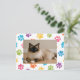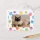 Share a little feline love with this charming customisable postcard, featuring your cat’s photo surrounded by a playful border of colourful paw prints. Perfect for sending sweet messages, thank you notes, or holiday greetings to fellow cat lovers. A fun and heartfelt way to showcase your furry friend!
