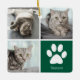 This beautiful cat photo Christmas ornament is personalized with adorable pictures of your sweet girl kitty. Customize this chic gift with your own custom feline photographs around a cool green square with a cute white paw print and your kitten's name in the center. Add your favorite full photograph on the back.
