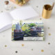 The front and back of this celebration of life memorial designed guest book are adorned with a photograph of a galvanised watering can and pot with flowers on tree stumps. Fill in the template fields for any guest book required event. Delete the text or click "customise" to select a typeface colour, style, and size you prefer.