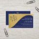WE CAN CUSTOMIZE YOUR TRIPLE MONOGRAM CONTACT US BEFORE ORDERING. PAPER: Shown on basic paper, which has a soft eggshell finish. COLOR PALETTE: Gold metal look with royal navy blue background and white text. DESIGN COLLECTION: A simple, classy, clean lined, modern and yet classic and upscale business card design, graphically designed by Audrey Jeanne Roberts. A sweeping dramatic curve sets apart the three dimensional gold and black metallic style raised appearance triple monogram style logo on a faux gold metallic looking background. (You MUST contact us before ordering or you will receive the "PAS" monogram. Your accounting firm name, information and your name are easily personalised using the custom template field. On the reverse side is a strikingly elegant repeat of he CPA logo with a template field for you to customise your own business name or tag line below a printer's ornament style dividing line. You can change the background to any colour using the customise it button and selecting "edit" button, drop down menu select "background" and then select your colour. You can also change the text colour in similar fashion.