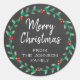 Custom Chalkboard Merry Christmas Holly Wreath Classic Round Sticker