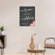 Custom chalkboard wedding reception sign print with pink flowers and customisable text - you can add bride's and groom's name and wedding date.  Dimensions of the sign print (poster) are 22 inches by 28 inches.