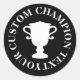 Custom champion trophy cup silhouette stickers and envelope seals. Round stickers for first prize award, tournaments, winners, achievement, accomplishment, test, contest, comparison etc. Handy for Birthday games, sports, cooking events, office, school, business and more. Number one stickers for best performance.