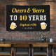 Celebrate his milestone birthday with this cool custom banner in crisp black, featuring "cheers and beers to XX years" in yellow and white lettering, with two beer mug illustrations. Personalise with his name and the party date.
