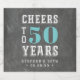 Commemorate a special birthday with these awesome personalised party favour beer labels. Cool chalkboard design features "cheers to XX years" in bold white and turquoise lettering. Add the occasion and date beneath for a unique birthday party keepsake. Example shown for a 50th birthday party.