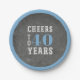 Add a cool custom touch to your milestone birthday celebration with these "cheers" themed party plates in grey chalkboard and blue. Design features "cheers to xx years" in the centre. Example shown for a 40th birthday party; customise with any age.