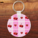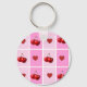 Custom Cherry Heart Chequerboard Pattern Key Ring