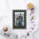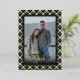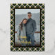 Contemporary classic Christmas holiday season green, white, black and gold foil coloured Buffalo lumberjack plaid tartan pattern. With option to customise or personalise with a photo and (limited) text of your choice. With room to customise or personalise the text on the front, and family name (or individual names) and a customisable season greeting message on the backside of the card.
