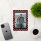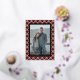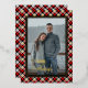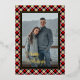 Contemporary classic Christmas holiday season red, white, black and gold foil coloured Buffalo lumberjack plaid tartan pattern. With option to customise or personalise with a photo and (limited) text of your choice. With room to customise or personalise the text on the front, and family name (or individual names) and a customisable season greeting message on the backside of the card.