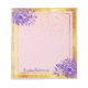 Trendy and glamourous with elegant rose gold, pink coloured background. With a faux rustic gold frame, and trendy violet and purple coloured watercolored flowers. Template for your name purple coloured letters in a hand lettered style script.