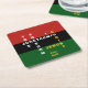Stylish JUNETEENTH coaster with Christian Bible reference, showing the inspirational quote TRUE FREEDOM IN CHRIST JESUS in a crossword format including JUNETEENTH, and is set against red, black and green panels (colours of the PAN AFRICAN FLAG). The main text is based on the Scripture reference from John 8:36 - HE WHO THE SON (JESUS) SETS FREE IS FREE INDEED. The Bible reference JOHN 8:36 is customisable, so you can replace the text with your MONOGRAM or NAME. This Juneteenth coaster would make an ideal addition to your cultural barware and party supplies for Juneteenth, Black History Month, Christmas, Birthdays and throughout the year. Be prepared to share your faith, as this would also make a great conversation starter.