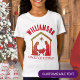 Custom Christian Nativity Family Christmas T-shirt with CUSTOMIZABLE TEXT. Ideal for family reunions and gatherings. Design shows popular nativity scene depicting Baby Jesus in a manger, in red faux glitter effect. The CUSTOMIZABLE family name is curved at the top, and at the bottom the text FAMILY CHRISTMAS can also be PERSONALIZED with a family motto, blessing or Bible verse. Other colors available so you can mix and match for all the family.