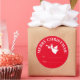 Custom Christmas Holiday to and from tag stickers. Personalised Happy Holidays Christmas presents labelling. Round glossy or matte stickers with halo angel blowing trumpet. Add your own name, seasons greetings, wishes etc. Personalised favour stickers, present labels and envelope seals / sealers. Cute little design for adults and kids (boys and girls). Festive elegant design with customisable background colour. Cute typography design for the holiday season. Red and white colours. Stylish script typography. Add family surname optionally. Available in small and extra large size. Fun DIY decoration accessories and xmas supplies.