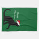 Beautiful green Christmas dish towel for your kitchen with your own personalised cursive text in white above the cute kitten silhouette wearing a red Santa hat. I love my pets and adorable kitties.