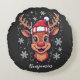 Custom Christmas Cheer Cute Reindeer in Hat Round Cushion