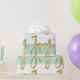 Gold Joy is the greeting in a modern font is on the front of this mint green and gold stripe design.