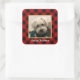 Custom Christmas Photo Frame Red and Black Plaid Square Sticker
