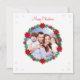 Cute modern custom family photo, pine wreath decorated with poinsettias and snowflakes Christmas Greeting Card. Text ready to be personalised.