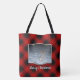 Custom Christmas Red and Black Plaid 2 Photo Frame Tote Bag