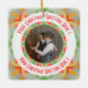 Custom Christmas Star Merry Green Photo Greeting Ceramic Ornament